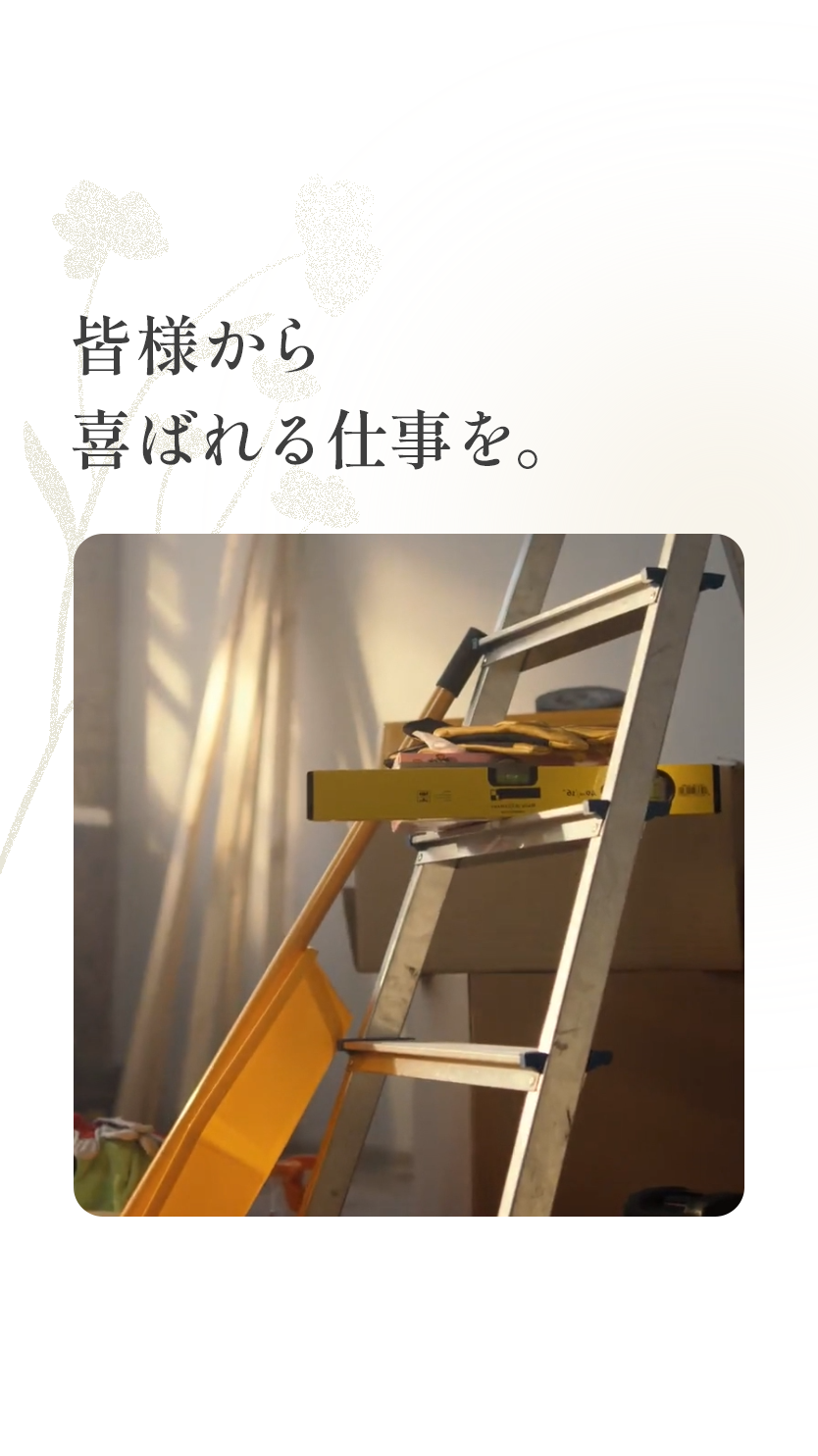 幅広い住空間に対応できる技術で施工はもちろんアフターケアまで、理想の空間に近づけるため、